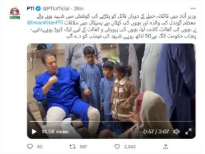 عمران خان کی شہید کارکن معظم کے لواحقین سے ملاقات، بچوں کی کفالت کا اعلان