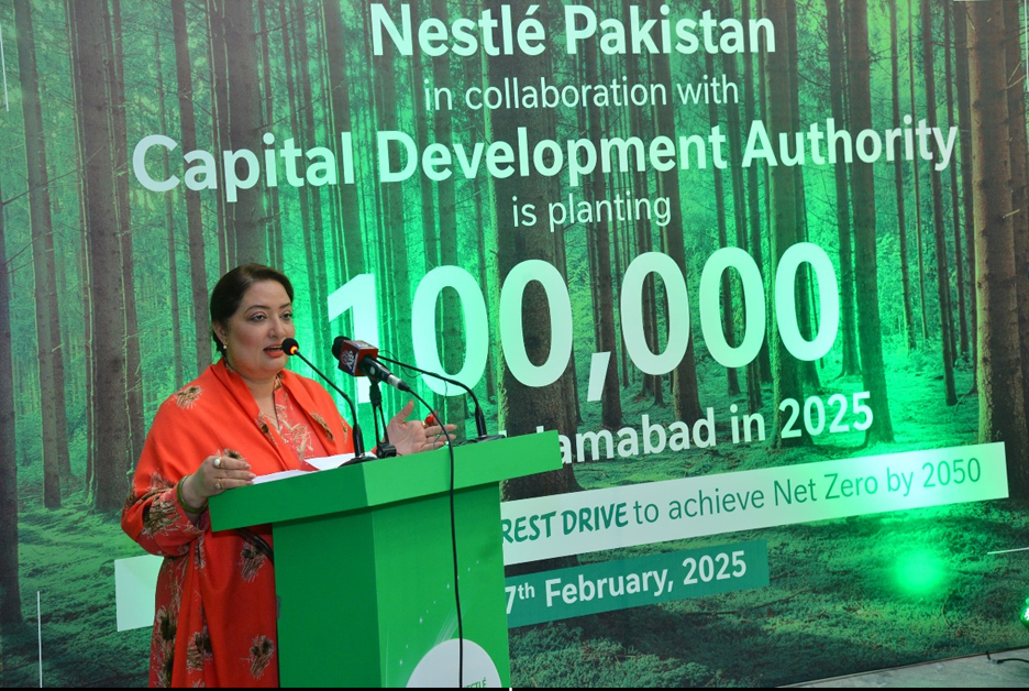وزیر اعظم کی معاون برائے ماحولیاتی تبدیلی اور ماحولیاتی رابطہ رومینہ خورشید عالم نے اسلام آباد میں نیسلے پاکستان کی سی ڈی اے کے اشتراک سے ایک لاکھ درخت کے ساتھ شہری جنگلات اگانے کی پہلی مہم کاافتتا ح کیا۔ نیسلے کیئر کے تحت یہ سرگرمی 2050 تک نیٹ زیرو کے حصول کیلئے کمپنی کی کاربن کے اخراج میں کمی کی کوششوں کا حصہ ہے۔