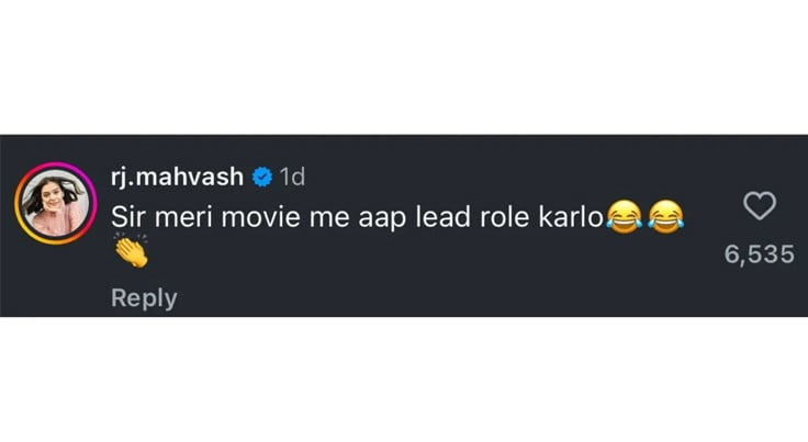 اس ویڈیو کے نیچے آر جے مہوش نے مزاحیہ انداز میں لکھا، “سر میری فلم میں آپ کا مرکزی کردار کرلوlaugh”۔