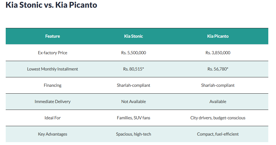 کراچی (قدرت روزنامہ)کِیا نے اپنی دو مشہور گاڑیوں کِیا سٹونک اور کِیا پکانٹو کے لیے بینک اسلامی کی شریعت کے مطابق فنانسنگ منصوبے کے تحت خصوصی رعایتی انسٹالمنٹ پلان کا اعلان کیا ہے۔ اس پیشکش کے تحت صارفین آسان ماہانہ اقساط میں اپنی پسندیدہ گاڑی خرید سکتے ہیں۔