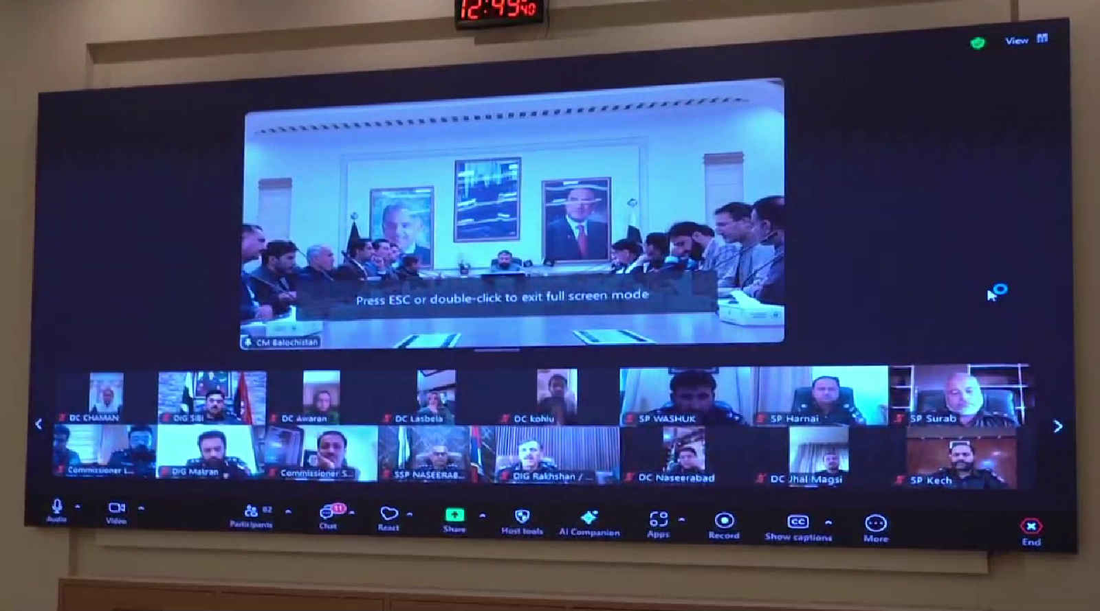 کوئٹہ (قدرت روزنامہ) وزیر اعلیٰ بلوچستان میر سرفراز بگٹی کی زیر صدارت انتظامی افسران کا اعلیٰ سطحی اجلاس منعقد ہوا جس میں چیف سیکرٹری بلوچستان، آئی جی پولیس، محکمہ داخلہ، ایس اینڈ جی اے ڈی، محکمہ تعلیم، محکمہ صحت اور محکمہ خزانہ کے سیکرٹریز سمیت تمام ڈویژن کمشنرز، ڈپٹی کمشنرز، ڈی آئی جیز اور ضلعی پولیس افسران نے ویڈیو لنک کے ذریعے شرکت کی۔