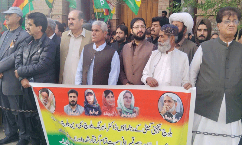 کوئٹہ میں احتجاجی مظاہرے سے خطاب کرتے ہوئے بلوچستان نیشنل پارٹی مینگل کے قائم مقام صدر ساجد ترین نے کہاکہ بلوچ یکجہتی کمیٹی کے کارکنان کی ناحق گرفتاری کے خلاف بی این پی کی مرکزی کمیٹی نے احتجاج کا اعلان کیا جس کے دوسرے مرحلے کے تحت مختلف اضلاع میں احتجاجی مظاہرے کیے گئے، اب 28 مارچ کو وڈھ سے کوئٹہ تک لانگ مارچ کیا جائےگا، بعدازاں اس لانگ مارچ کو دھرنے کی شکل دی جائے گی۔