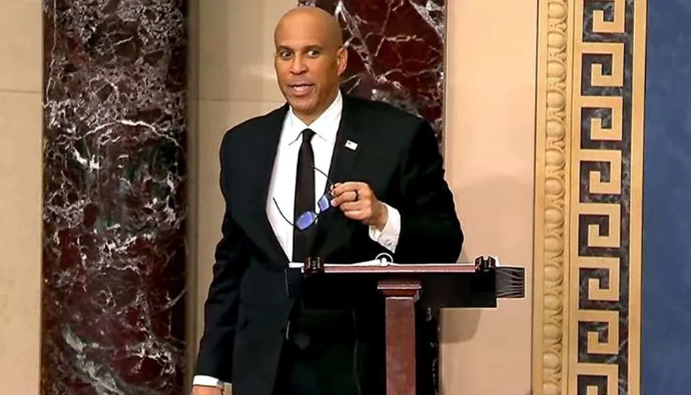ریاست نیوجرسی سے تعلق رکھنے والے سینیٹر کوری بُوکر نے تقریر کے آغاز پر کہا کہ وہ جب تک جسمانی طورپر قابل ہیں، یہ تقریر جاری رکھیں گے۔