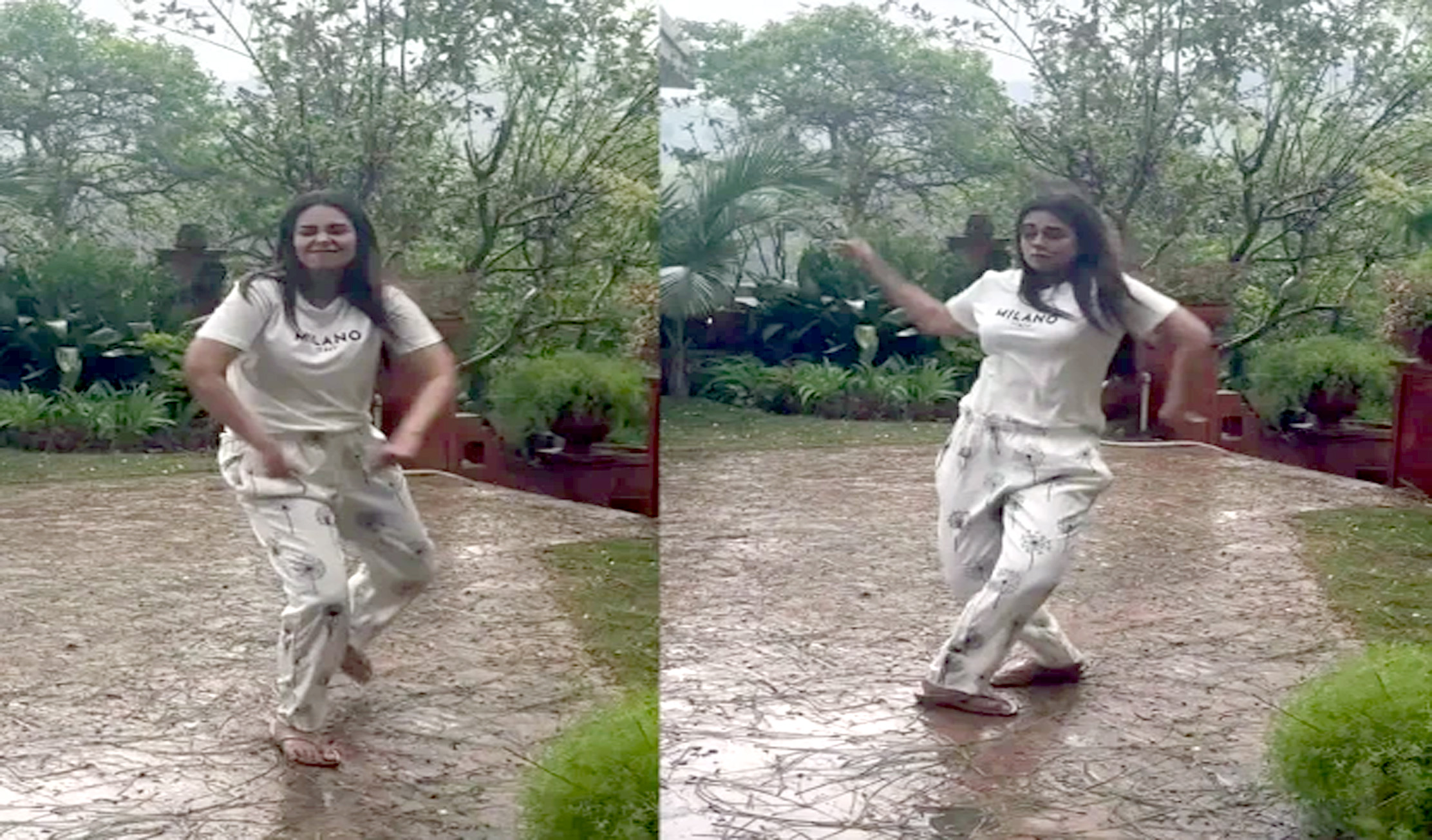 اداکارہ نے دو روز قبل اسلام آباد اور پنجاب کے مختلف علاقوں میں ہونے والی بارش اور ژالہ باری کے موسم سے محظوظ ہوتے ہوئے ڈانس کیا اور اس کی ویڈیو ریکارڈ کی۔