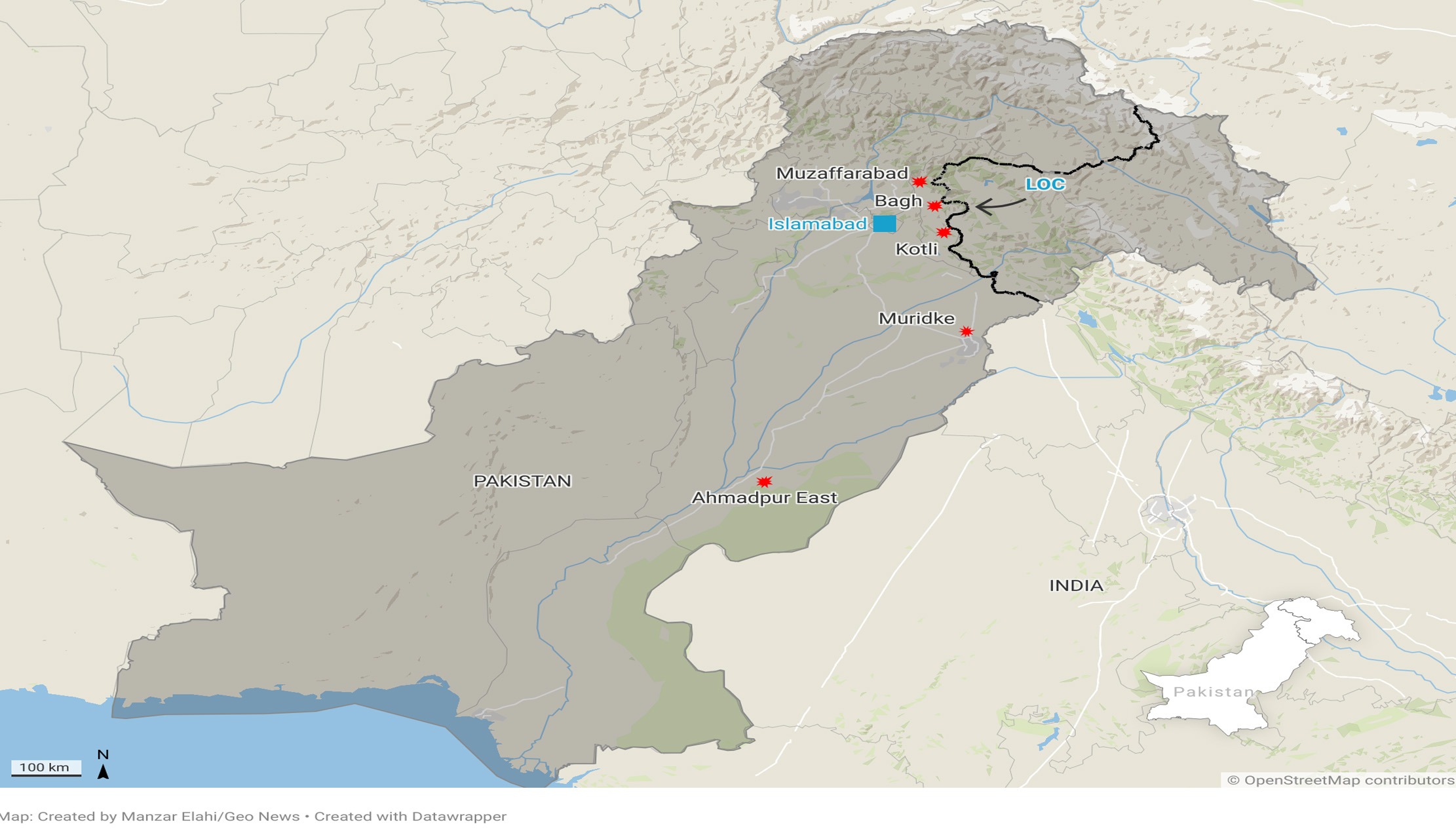 اس سے قبل ڈی جی آئی ایس پی آر کا کہنا تھا کہ دشمن نے کوٹلی، احمدپور شرقیہ، مظفرآباد، باغ اور مریدکے میں حملے کیے۔