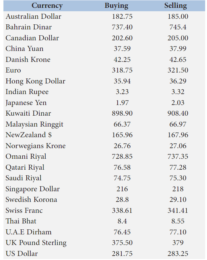 یہ نرخ مقامی کرنسی یعنی پاکستانی روپے کے مقابلے میں طے کیے گئے ہیں جن کا تعین اوپن مارکیٹ کے رجحانات کی بنیاد پر ہوتا ہے۔