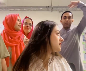 اب تازہ ویڈیو میں چند لڑکیوں کے پیچھے ایک لڑکے کو کھڑے دیکھا گیا جو ہلکا سامٹکا کر کہتا ہے کہ کراچی میں موت کا ننگا ناچ ، ساتھ ہی لڑکیوں کی ہنسی چھوٹ جاتی ہے ، اس کے بعد لڑکا پھر گویا ہوتا ہےکہ یہ جو آپ سب دیکھ رہے ہیں، یہ جنت کی حوریں ہیں۔