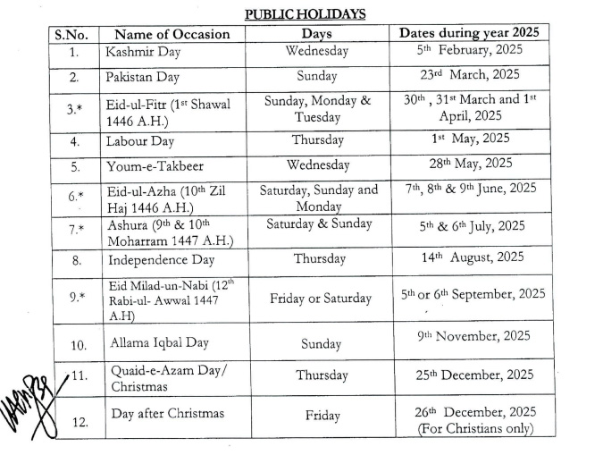 واضح رہے کہ گزشتہ سال حکومت نے 28 مئی یوم تکبیر پر عام تعطیل کا اعلان کیا تھا، سال 2025ء کے حکومت کے گزٹیڈ ہالیڈے کلینڈر میں 28 مئی کا دن بھی شامل کیا گیا ہے تاہم ابھی 28 مئی کی چھٹی کا باضابطہ نوٹی فکیشن جاری نہیں ہوا۔