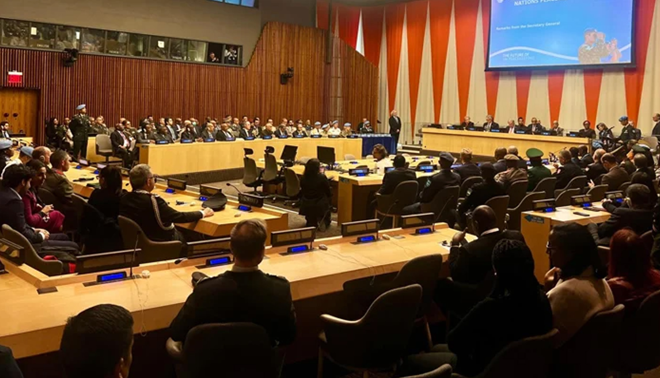 انہوں نے دنیا بھر میں بڑھتی ہوئی تقسیم، دہشت گردی جیسے خطرات، امن محافظوں کے خلاف مہلک گمراہ کن معلومات، اور سرحدوں سے ماورا چیلنجز جیسے موسمیاتی تبدیلی اور بین الاقوامی جرائم کو اجاگر کیا۔