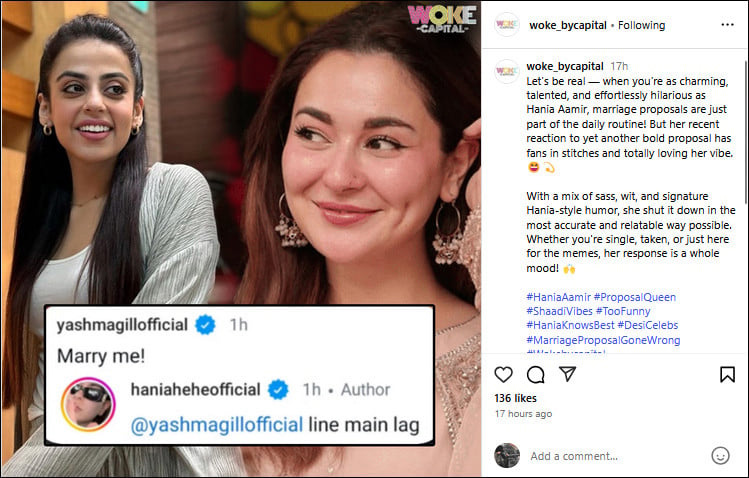 ہانیہ عامر نے اس بولڈ پیغام کا جواب اپنے خاص برجستہ انداز میں کچھ یوں دیا: ’’لائن میں لگ!‘‘ گویا وہ کہنا چاہ رہی ہوں کہ ان کے چاہنے والوں کی فہرست کافی طویل ہے، اور فی الحال وہ سنگل لائف کا خوب مزہ لے رہی ہیں۔
