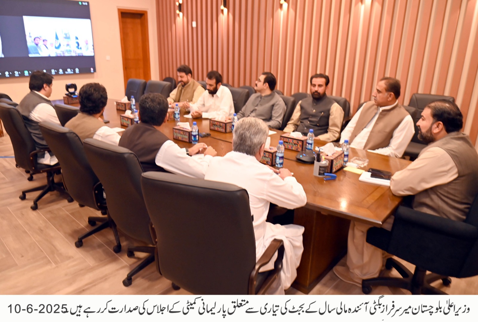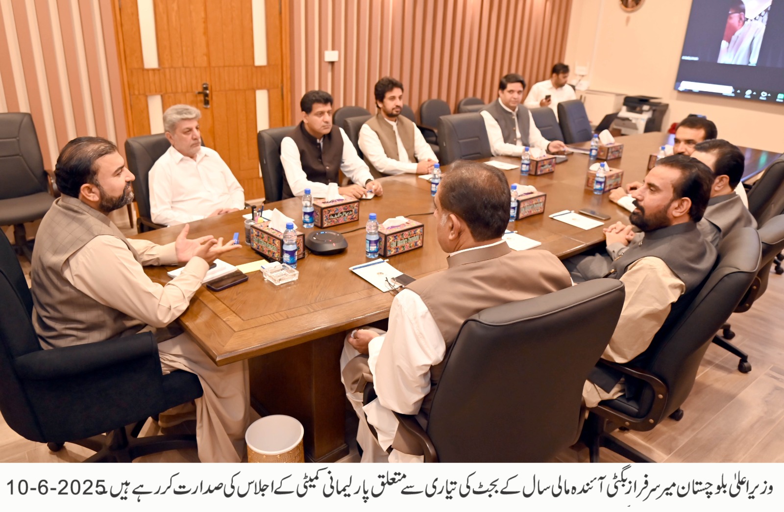 وزیر اعلیٰ بلوچستان میر سرفراز بگٹی کی زیر صدارت آئندہ مالی سال کے بجٹ کی تشکیل سے متعلق پارلیمانی کمیٹی کا مشاورتی اجلاس
