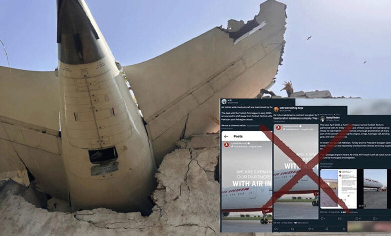 لیکن بھارتی صحافیوں کا یہ دعویٰ جھوٹا نکلا۔ ترک میڈیا نے بھارتی میڈیا کے اس دعوے کو بے بنیاد قرار دے دیا ہے۔ ترکیہ کے میڈیا کے مطابق حادثے کا شکار ہونے والا طیارہ بوئنگ 787-8 ڈریم لائنر تھا، جبکہ جو تصاویر ترکش ٹیکنک کے ہینگرز کے ساتھ شیئر کی جا رہی تھیں ان میں بوئنگ 777 طیارے دکھائے گئے تھے۔