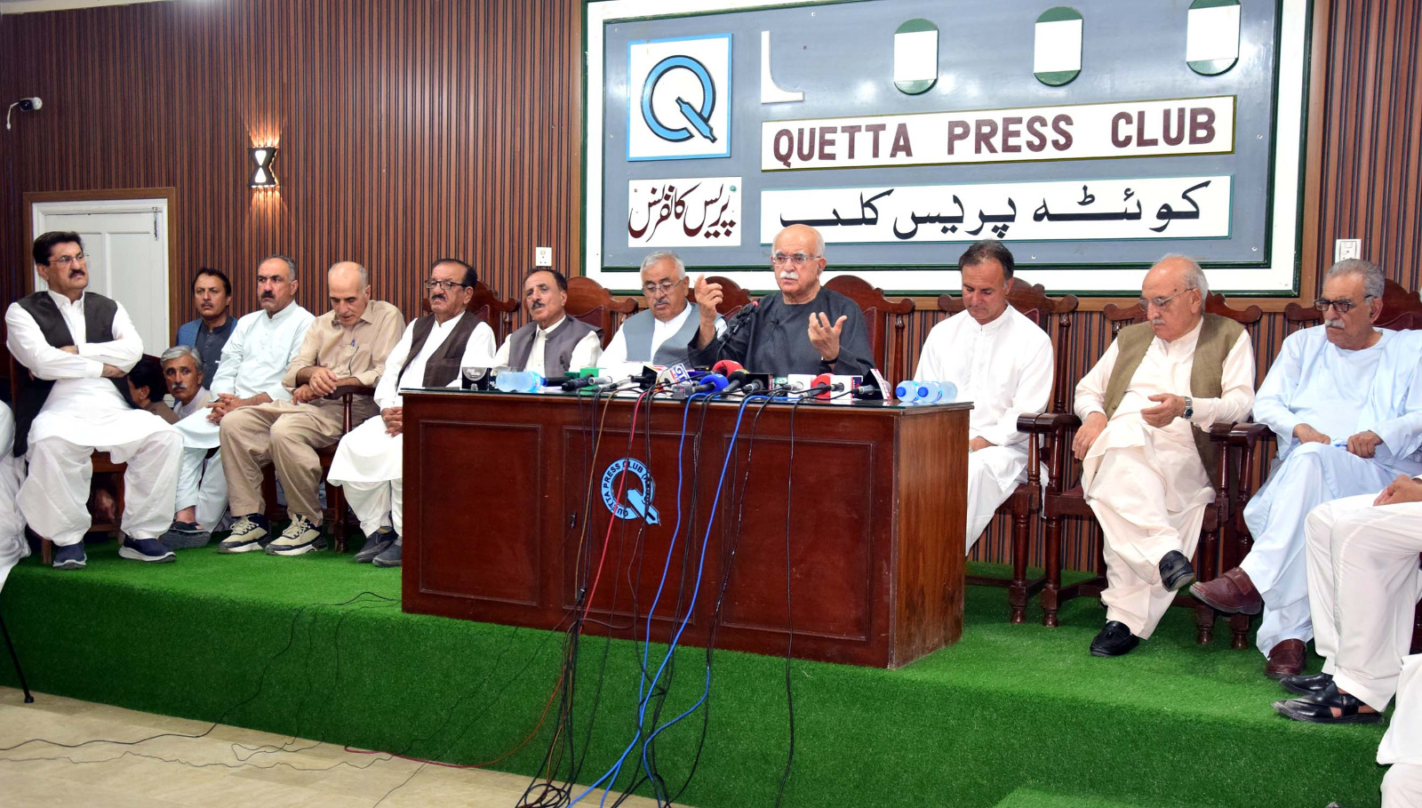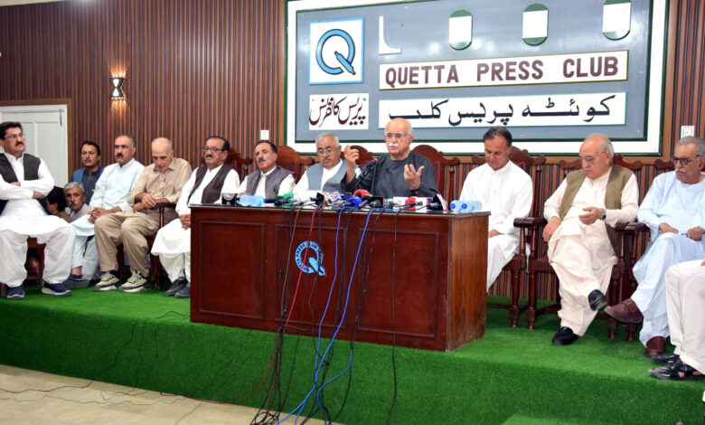 ان خیالات کا اظہار جمعہ کو کوئٹہ پریس کلب میں پریس کانفرنس سے خطاب کرتے ہوئے کیا اس موقع پر عبدالرئوف لالا،عبدالرحیم زیارتوال، تالیمند خان، آغا سید لیاقت علی،ڈاکٹر حامد خان اچکزئی،علاوالدین کولکوال، عبدالحق ابدال،صلاح الدین اچکزئی، عبدالقہار خان ودان، ڈاکٹر محمد علی، جانان افغان،صابرین خان چغرزئی، سید شراف آغا سمیت پارٹی کے مرکزی ورکنگ کمیٹی کے اراکین، صوبائی کابینہ کے اراکین اور دیگر رہنماں وکارکنوں نے کثیر تعداد میں شرکت کی محمود خان اچکزئی نے کہا ہے کہ ملک کے 25 کروڑ عوام سے زر، زور اور ڈنڈے کے ذریعے ووٹ کا حق چھینا گیا ہے، جو کہ آئین پاکستان کی صریح خلاف ورزی ہے۔ انہوں نے کہا کہ آئین کا تحفظ اور دفاع ہمارا قومی فریضہ ہے، اور جمہوریت سے ہماری وابستگی غیر مشروط ہے نے کہا کہ بلوچ اور پشتون صوبوں کو طاقت، گولی یا جبر سے نہیں بسایا جا سکتا۔ یہ علاقے اپنے حقِ حکمرانی کے متقاضی ہیں۔ انہوں نے کہا کہ ایک ووٹ کو 90 کروڑ میں تولنے والی موجودہ انتخابی صورتِ حال نے جمہوریت کا مذاق بنا دیا ہے۔ پشتون اور بلوچ بارڈرز پر اسلحہ یا ہیروئن اسمگلنگ کرنے والوں کو گولی مارنے کی اجازت ہونی چاہیے، لیکن چھوٹے تاجروں اور کاروباریوں پر پابندیاں ناقابل قبول ہیں۔