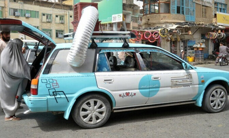 قندھار(قدرت روزنامہ)افغان ٹیکسی ڈرائیوروں نے شدید گرمی کے موسم میں گرمی سے بچنے کیلئے حل نکال لیا۔