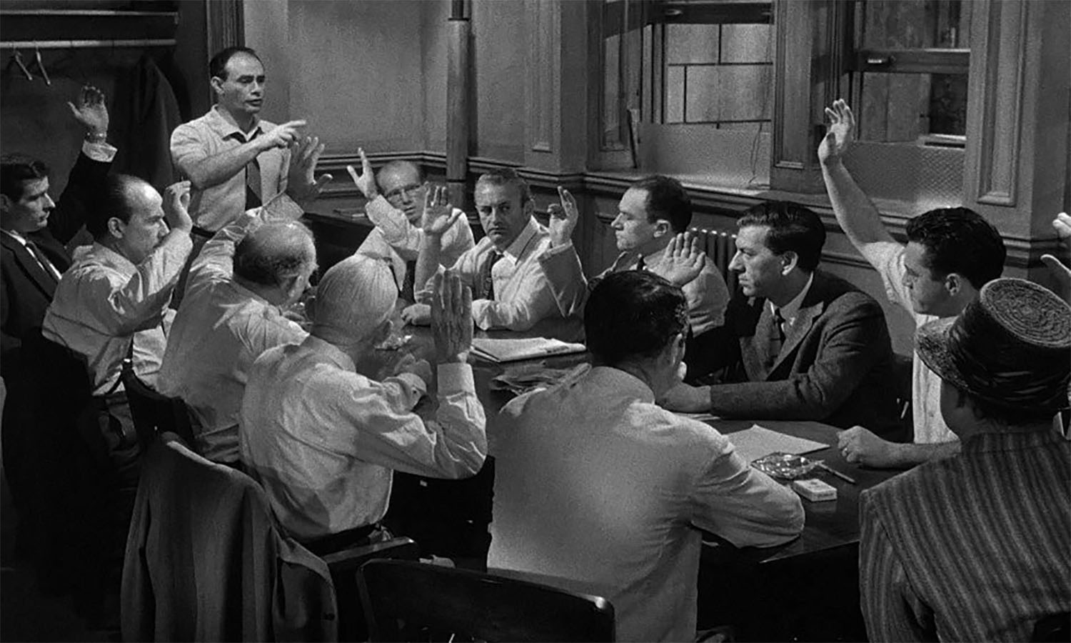 یہ قتل کے ایک مقدمے کا فیصلہ کرنے والی جیوری کے گرد گھومنے والی فلم ہے جس میں ایک فرد ملزم کو مجرم قرار دینے سے انکار کرتا ہے اور پھر جیوری کے تمام اراکین کو اپنی رائے بدلنے پر مجبور کردیتا ہے۔