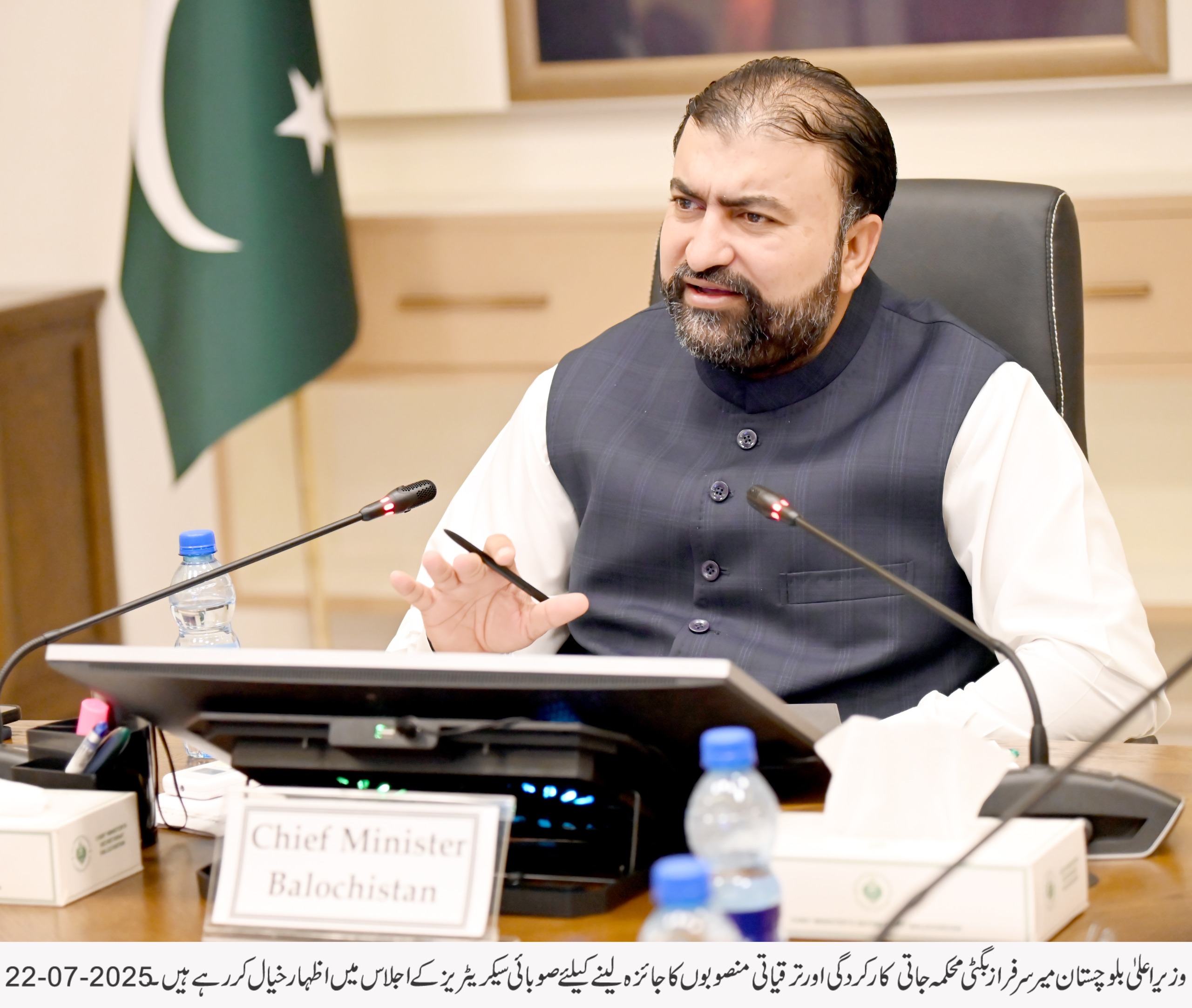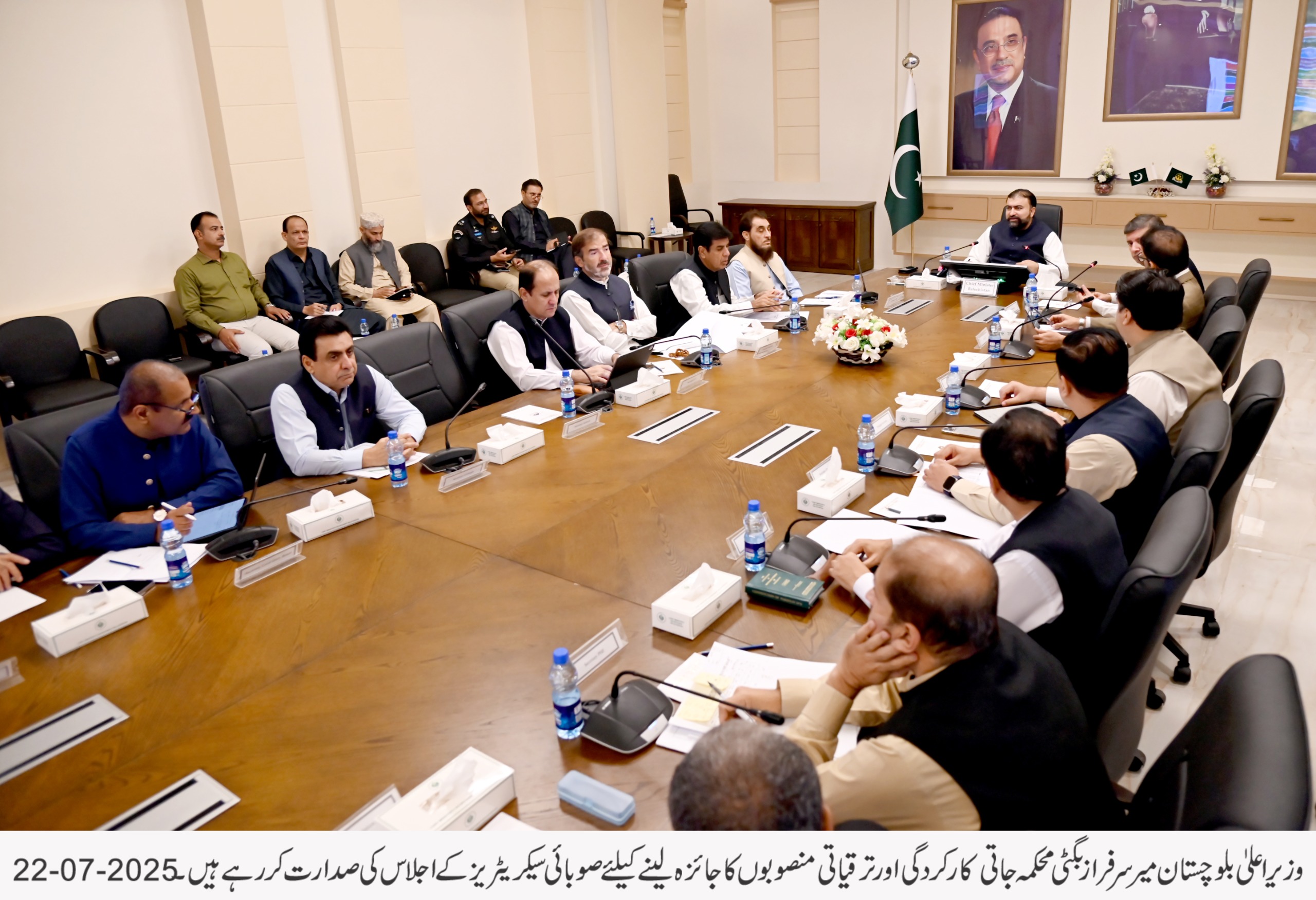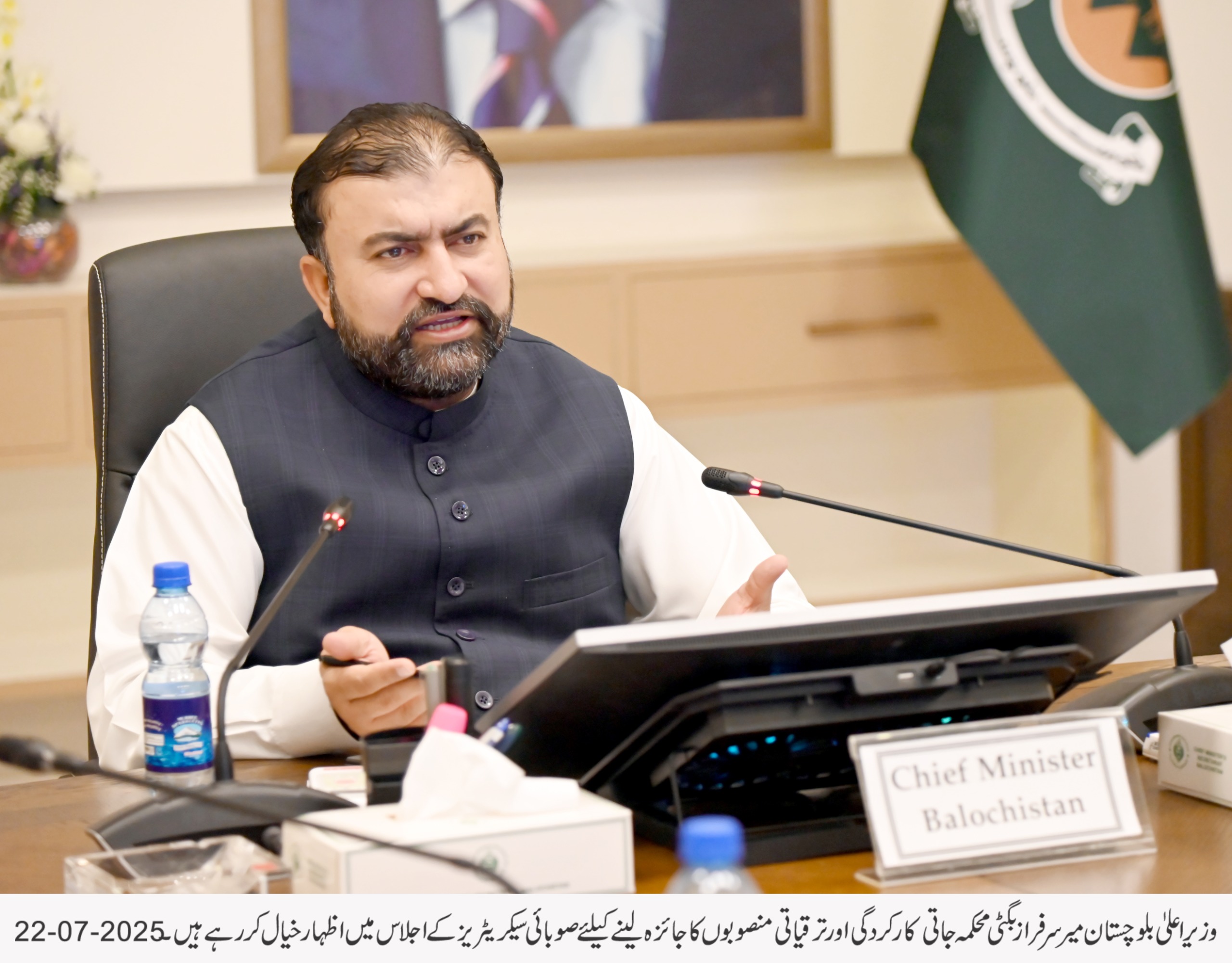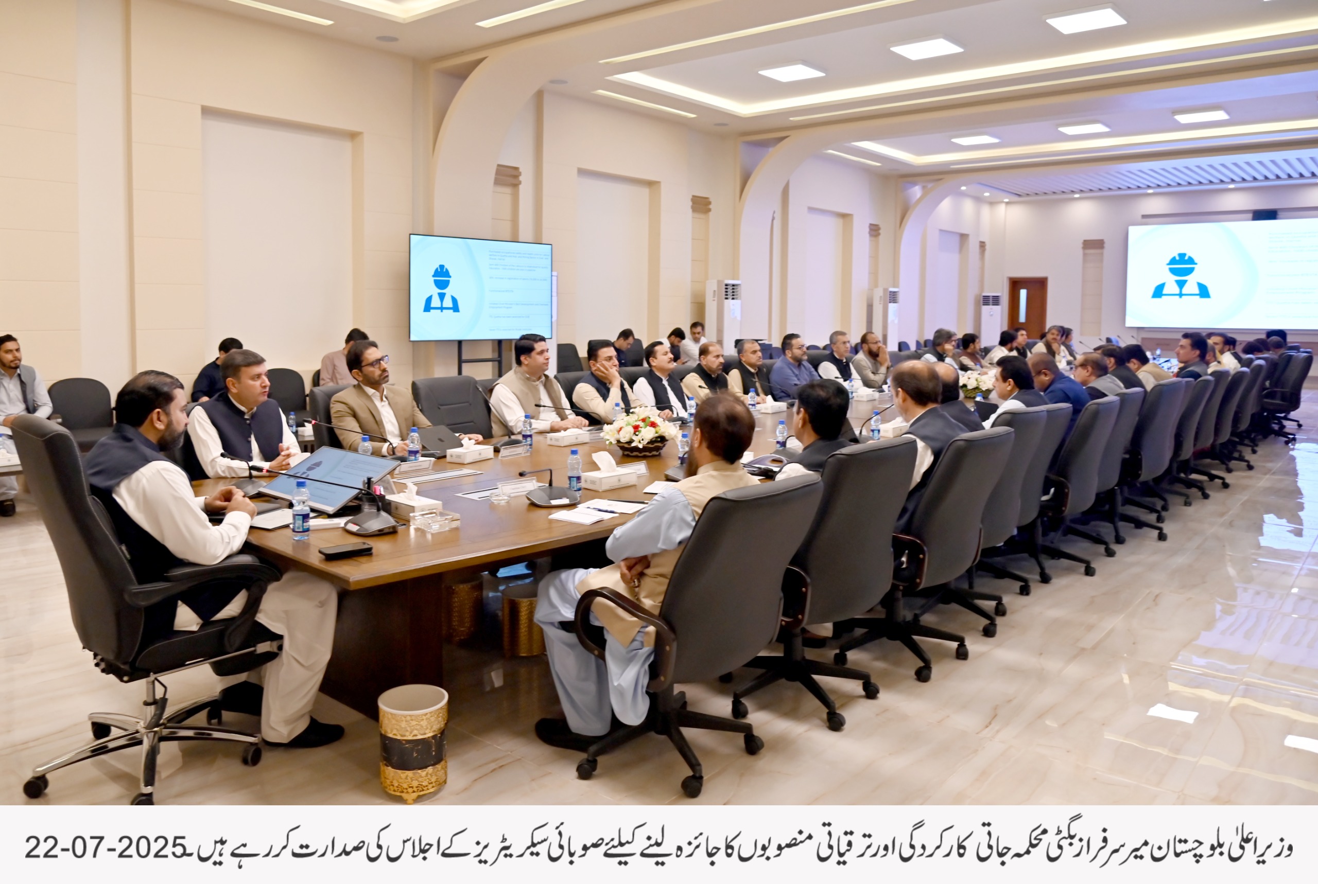 بورڈ آف ریونیو کا سالانہ ریونیو ہدف 350 ارب روپے مقرر تھا جو بڑھ کر 500 ارب روپے تک پہنچ چکا ہے جو مالی نظم و نسق میں بہتری کی عکاسی کرتا ہے۔ بلوچستان کی خواتین کو بااختیار بنانے کے لیے تاریخ کا پہلا ویمن انڈومنٹ فنڈ قائم کیا گیا ہے جبکہ تعلیمی اداروں میں جدید ٹیکنالوجی کے فروغ کے لیے 380 اسکولوں میں سمارٹ بورڈز نصب کیے گئے ہیں اور طلبہ کے لیے غذائی پروگرام متعارف کرایا گیا ہے۔ زراعت کے شعبے میں بھی انقلابی اقدامات کرتے ہوئے “کسان کارڈ” متعارف کرایا گیا ہے، جس سے کاشتکار براہِ راست حکومتی سہولیات سے مستفید ہو سکیں گے سیلاب سے تحفظ کے لیے 362 فلڈ پروٹیکشن ڈیمز مکمل کیے جا چکے ہیں وزیر اعلیٰ بلوچستان نے اجلاس میں واضح ہدایات دیتے ہوئے کہا کہ تمام سیکرٹریز اپنے محکموں کی نگرانی کے لیے اندرونِ صوبہ دورے کریں اور 15 اگست تک چھوٹی اسکیموں کی محکمہ جاتی منظوری کا عمل ہر صورت مکمل کیا جائے ترقیاتی منصوبوں کی رفتار تیز کی جائے تاکہ عوام کو ان کے ثمرات جلد از جلد میسر آ سکیں۔