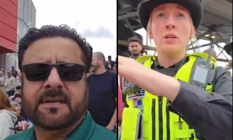 I have seen people wearing Virat Kohli name T-shirts even in Pakistan nobody objects and here at the so called democratic and liberal country this man has been asked to hide his kit but why?Video Courtesy: @irfan_views99 pic.twitter.com/C16ZRdeJQe