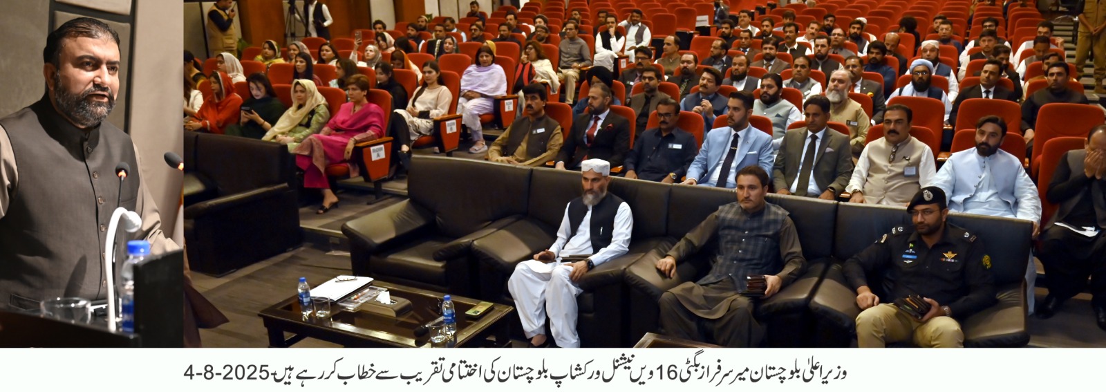 وزیر اعلیٰ نے شرکاء کو مبارکباد دیتے ہوئے اس امید کا اظہار کیا کہ وہ یہاں سے حاصل کردہ علم اور تجربے کو معاشرے میں مثبت تبدیلی کے لیے بروئے کار لائیں گے انہوں نے کہا کہ یہ ورکشاپ محض ایک اختتام نہیں بلکہ قومی شعور، ادارہ جاتی افہام و تفہیم اور فکری تحقیق کے نئے سفر کا نقطۂ آغاز ہے میری دعا ہے کہ آپ نے ان دو ہفتوں میں جو کچھ سیکھا جو کچھ آپ کو پاکستان اور بلوچستان کے بارے میں بتایا گیا، اور جس ریسرچ سے آپ گزرے ان تمام تجربات کو آپ اپنی زندگی کا مستقل حصہ بنائیں۔