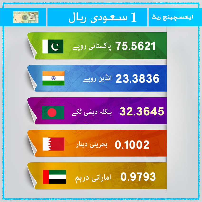 پاکستان، انڈیا اور بنگلہ دیش میں رقوم بھیجنے کے لیے ریال کا ریٹ، ٹرانزیکشن مرکز کا نام اور اس کے ساتھ ٹرانزیکشن فیس پر ویلیو ایڈیڈ ٹیکس (واٹ) کی معلومات بھی ذیل میں درج ہیں۔