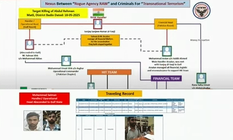 پریس کانفرنس میں مزید کہا گیا کہ ’را‘ نے اس منصوبے میں ایک علیحدگی پسند تنظیم کو بھی استعمال کیا، جبکہ بھارتی خفیہ ایجنسی اس سے قبل بھی پاکستان میں متعدد دہشتگردانہ وارداتوں میں ملوث رہی ہے۔