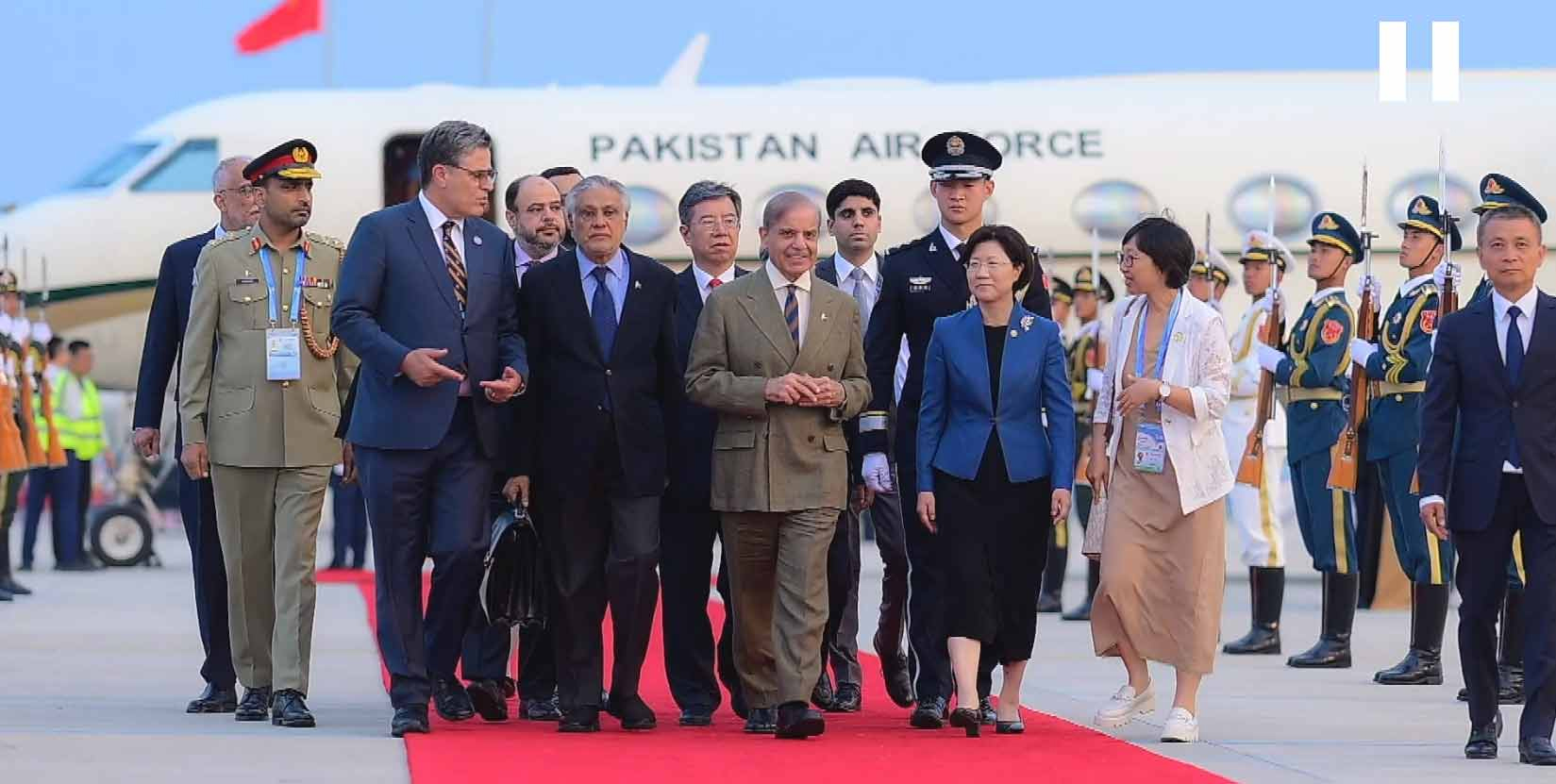 وزیراعظم شہبازشریف چین کے سرکاری دورے پر تیانجن پہنچ گئے، ریڈ کارپٹ استقبال