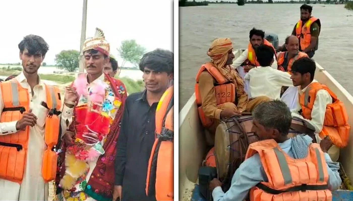 ریسکیو کی ٹیم نے کشتیوں میں بارات کو منزل مقصود تک پہنچایا۔
