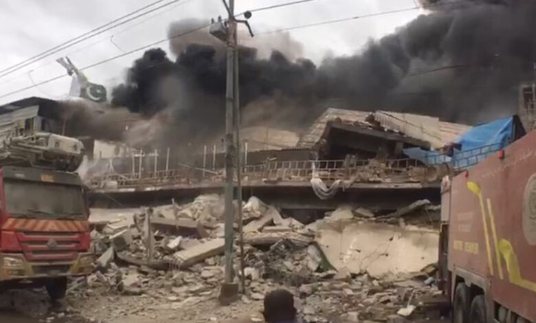 نیو کراچی میں گارمنٹ فیکٹری آتشزدگی کے باعث زمین بوس ہوگئی