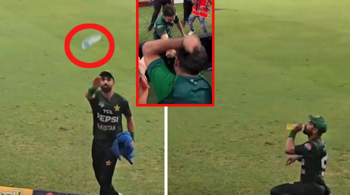 پاکستانی فینز حارث کے رافیل سیلبیریشن کے دیوانے، فاسٹ بولر سے پانی اور بینڈ لینے کی ویڈیوز وائرل