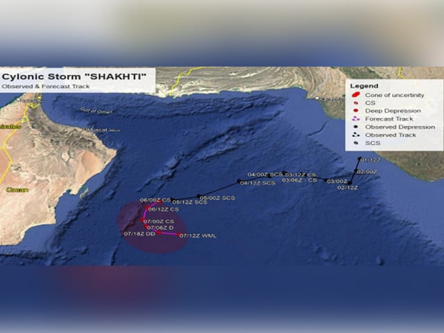 محکمہ موسمیات نے شمال مغربی بحیرہ عرب میں سمندری طوفان شکتی کے متعلق 11واں الرٹ جاری کر دیا ہے۔ طوفان کا مرکز کراچی سے تقریباً 910 کلومیٹر جنوب مغرب میں ہے۔