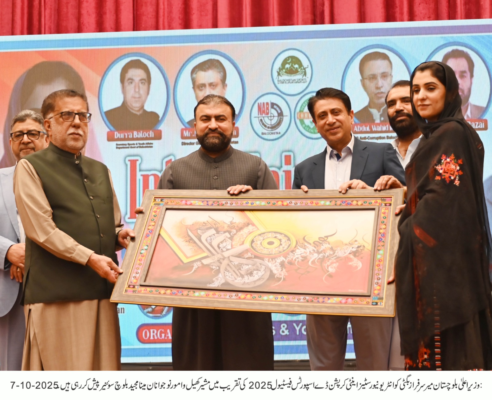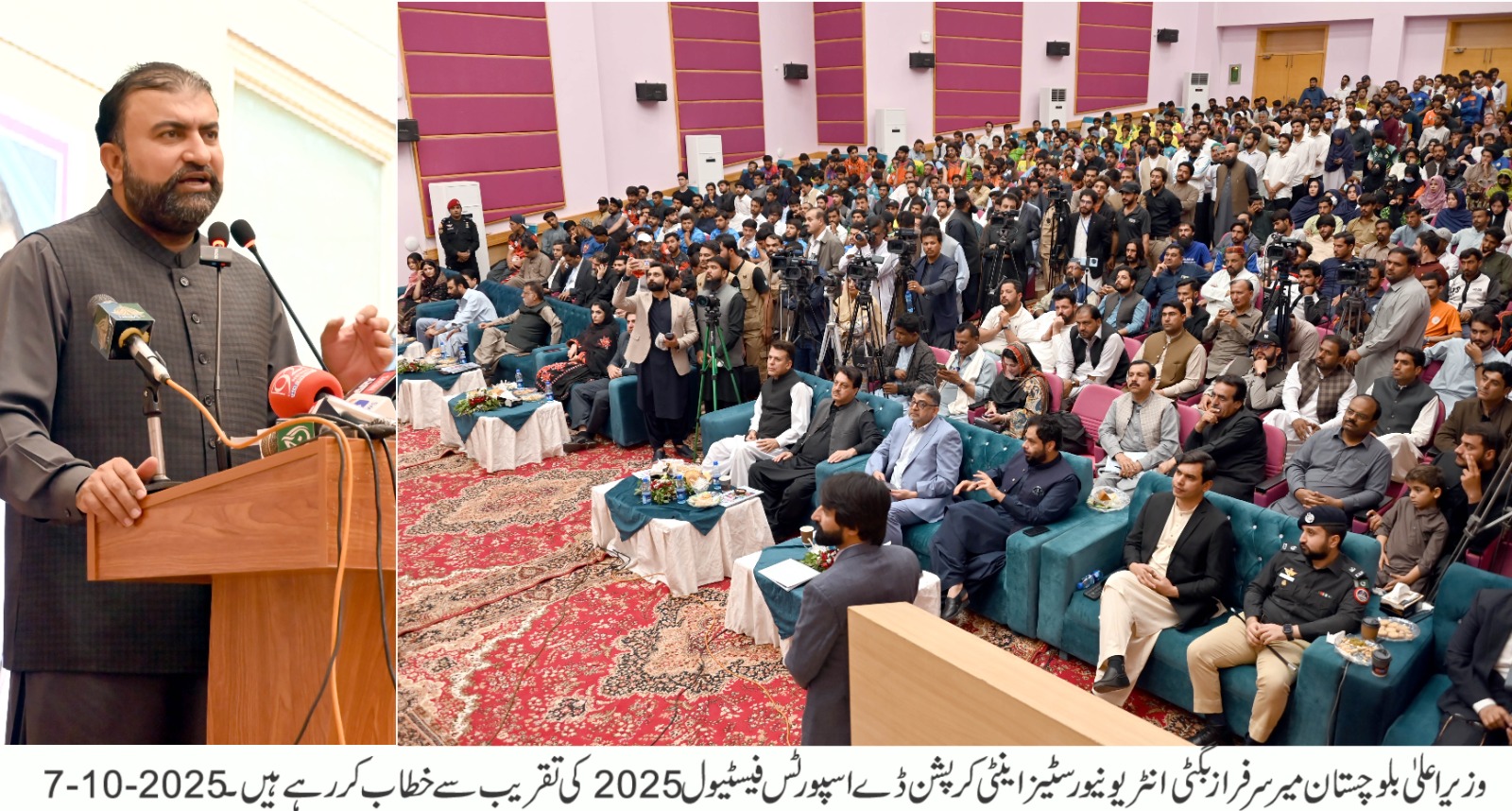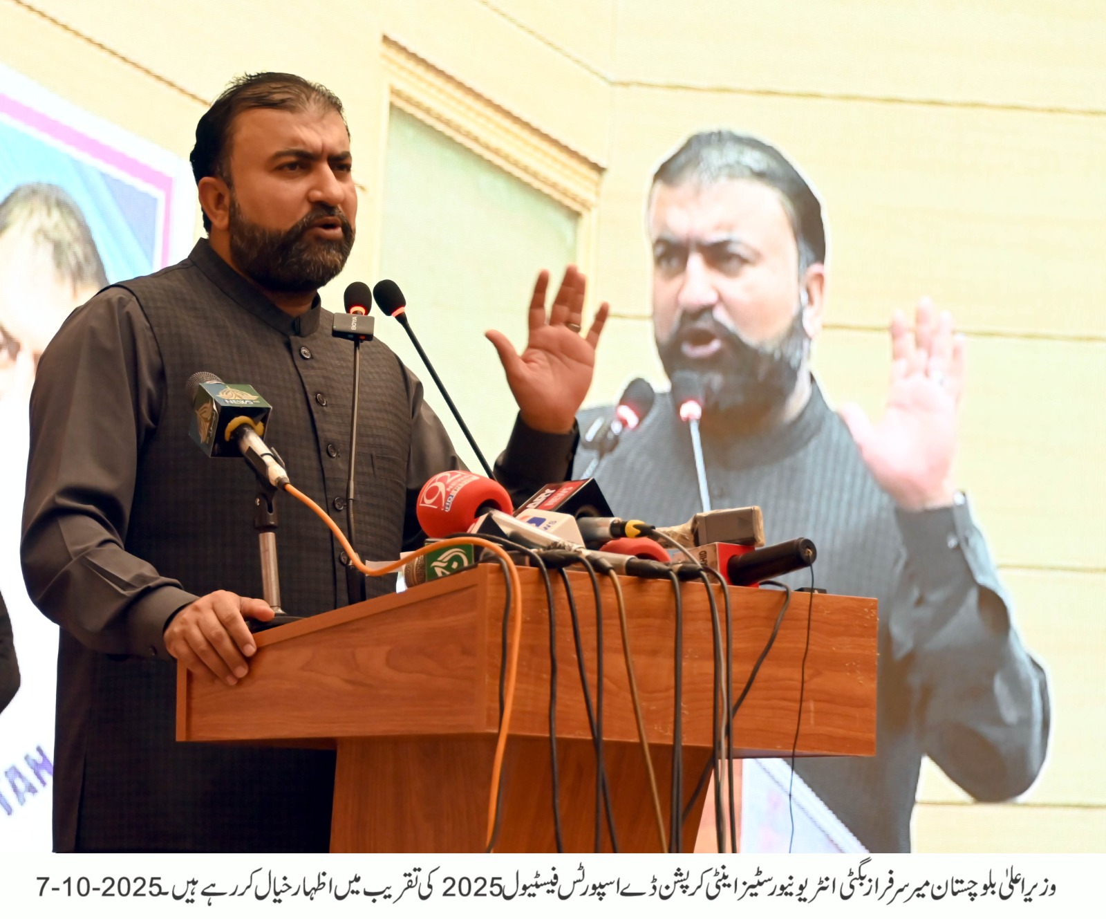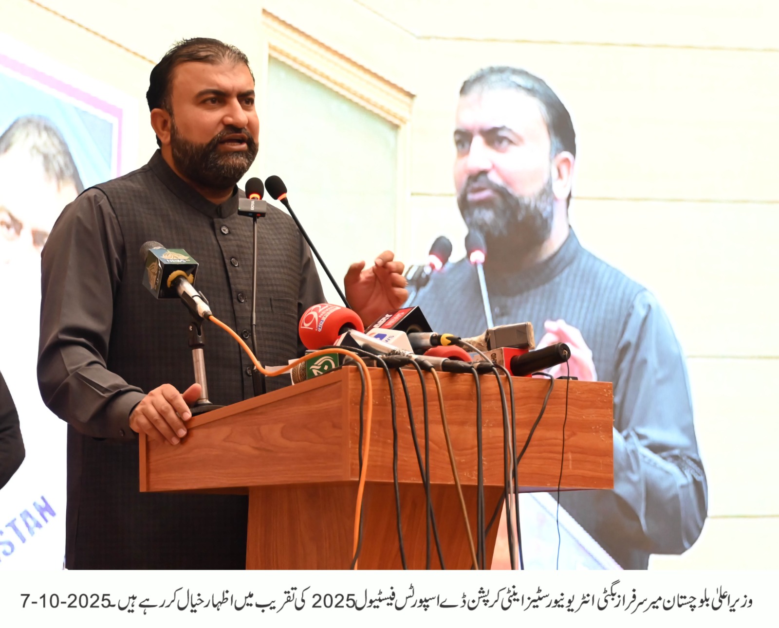 میر سرفراز بگٹی نے عزم ظاہر کیا کہ بلوچستان کے وسائل عوام کی امانت ہیں اور انہیں صرف عوامی فلاح و بہبود کے لیے استعمال کیا جائے گا۔ انہوں نے کہا کہ حکومت دیانت دار افسران کی حوصلہ افزائی کر رہی ہے اور بدعنوان عناصر کے خلاف بلا امتیاز کارروائیاں جاری ہیں۔ انہوں نے نوجوانوں کو مخاطب کرتے ہوئے کہا کہ اگر وہ آج کرپشن کے خلاف متحد ہو جائیں تو آنے والی نسلوں کو ایک صاف، شفاف اور مضبوط بلوچستان ورثے میں ملے گا۔