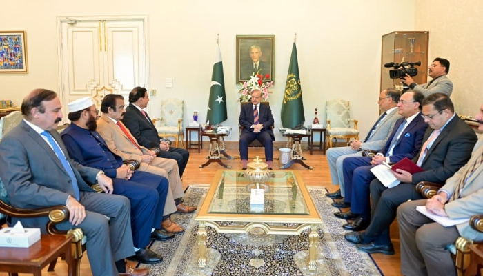 آزاد کشمیر میں کامیاب مذاکرت کے بعد حکومتی مذاکراتی کمیٹی نے وزیراعظم شہباز شریف سے ملاقات کی جس میں راجہ پرویزاشرف، رانا ثنا اللہ، احسن اقبال، محمد اورنگزیب، سرداریوسف، طارق فضل اور احد چیمہ سمیت دیگر موجود تھے۔