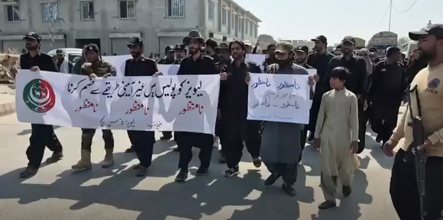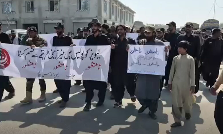 سوراب میں لیویز فورس کے انضمام کے خلاف احتجاجی ریلی، اہلکاروں اور عوام کا مشترکہ مظاہرہ