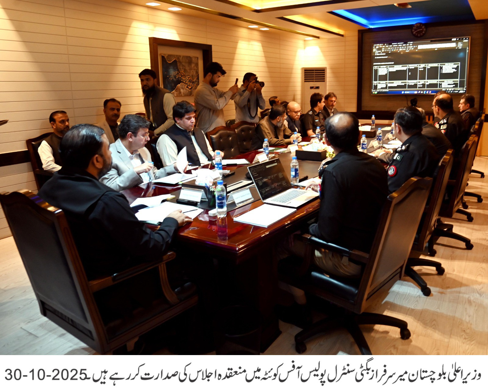 وزیرِ اعلیٰ بلوچستان کی زیرِ صدارت سنٹرل پولیس آفس کوئٹہ میں اعلیٰ سطح اجلاس، لیویز فورس کے پولیس میں انضمام کی رفتار تیز کرنے، پولیس کو جدید ٹیکنالوجی و سہولیات فراہم کرنے، اور شہداء پیکج بہتر بنانے کے فیصلے
