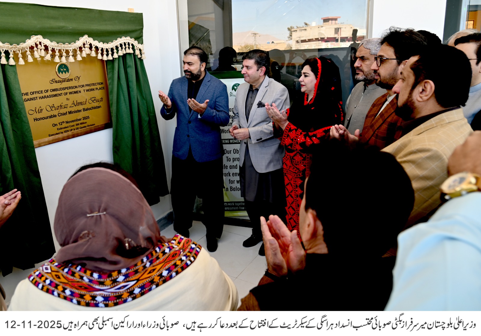 اس موقع پر وزیر اعلیٰ بلوچستان میر سرفراز بگٹی نے اظہار خیال کرتے ہوئے کہا کہ کام کے مقامات پر خواتین کو ہراسگی سے بچانے کے لیے مؤثر اور سخت قوانین ناگزیر ہیں انہوں نے ہدایت کی کہ ہراسگی کے خلاف رائج الوقت قوانین کا ازسرِ نو جائزہ لے کر انہیں مزید سخت بنایا جائے تاکہ خواتین ایک محفوظ اور باعزت ماحول میں اپنی پیشہ ورانہ ذمہ داریاں ادا کرسکیں۔