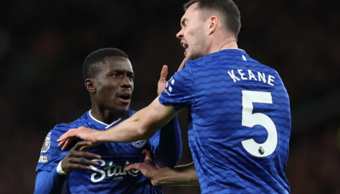 ایورٹن کے مڈفیلڈر اڈریسا گوئی کو اپنی ہی ٹیم کے کھلاڑی مائیکل کین کے ساتھ جھگڑنے پر ریڈ کارڈ دیا گیا۔