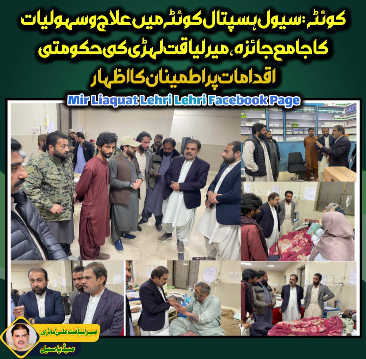 سیول ہسپتال کوئٹہ میں علاج و سہولیات کا جامع جائزہ، میر لیاقت لہڑی کی حکومتی اقدامات پر اطمینان کا اظہار