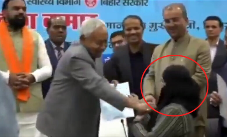 پٹنہ(قدرت روزنامہ)بھارتی ریاست بہار کے دارالحکومت پٹنہ میں ایک سرکاری تقریب کے دوران وزیر اعلیٰ نتیش کمار کی جانب سے ایک مسلمان خاتون ڈاکٹر کا نقاب زبردستی اتارنے کی کوشش کی گئی جس کے بعد سوشل میڈیا پر مسلم صارفین کے ساتھ ساتھ بھارتی عوام بھی بھڑک اٹھے اور اپوزیشن جماعتوں نے بھی انہیں آڑے ہاتھوں لیا۔