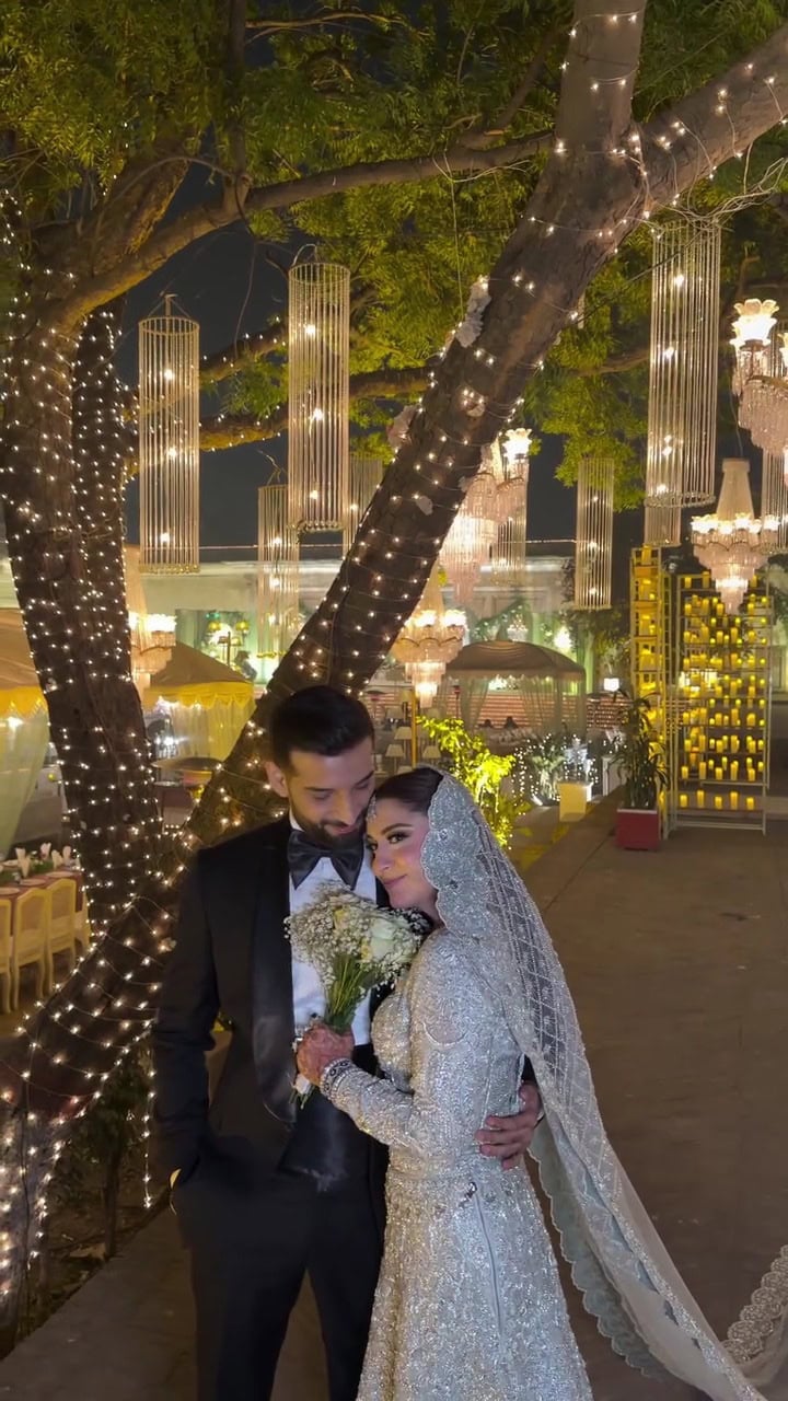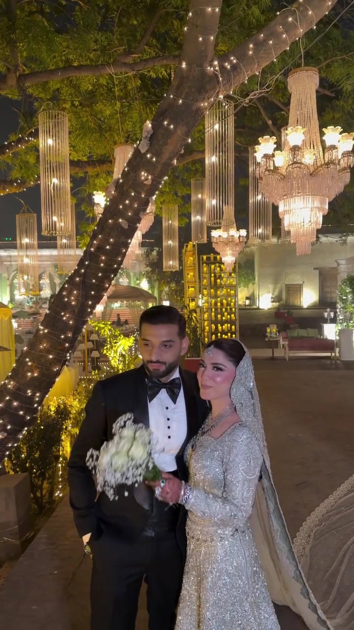 ویڈیو میں حنا نیازی چاندی کی رنگت والا خوبصورت لباس پہنے اپنے شوہر کے ساتھ پوز دیتی نظر آرہی ہیں