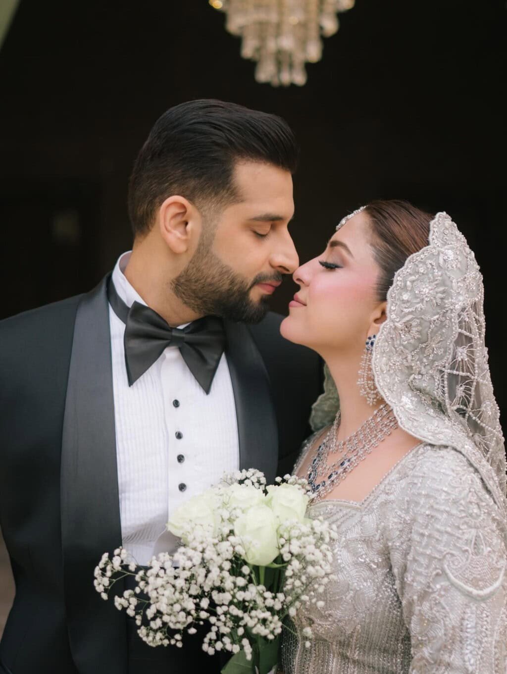 ایک خاص لمحے میں انہوں نے پھولوں کا گلدستہ چہرے کے سامنے رکھتے ہوئے ایسے انداز میں تصویر بنوائی جیسے وہ اپنے شوہر کو بوسہ دے رہی ہوں۔