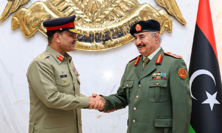 Field Marshal Syed Asim Munir, NI (M), HJ, COAS & CDF, who is on a official visit to Libya, called on Field Marshal Khalifa Belqasim Haftar, Commander-in-Chief of the Libyan Arab Armed Forces and Lieutenant General Saddam Khalifa Haftar, Deputy Commander-in-Chief of the LAAF. pic.twitter.com/myXRN1j7kO