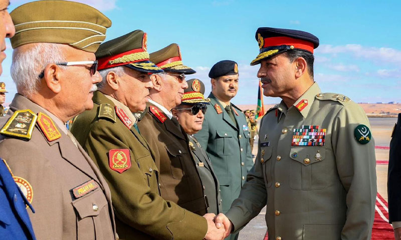 لیبیا:چیف آف ڈیفنس فورسز فیلڈ مارشل سید عاصم منیر نے لیبیا کا سرکاری دورہ کیا جہاں پاکستان اور لیبیا کے درمیان دفاعی تعاون بڑھانے پر اتفاق کیا گیا۔