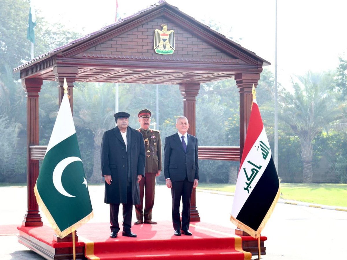 صدر مملکت آصف علی زرداری نے عراقی صدر ڈاکٹر عبداللطیف جمال رشید سے بغداد پیلس میں ملاقات کی جہاں ان کی آمد پر صدر آصف علی زرداری کو شان دار گارڈ آف آنر پیش کیا گیا اور سرکاری استقبالیہ تقریب میں قومی ترانے بجائے گئے۔