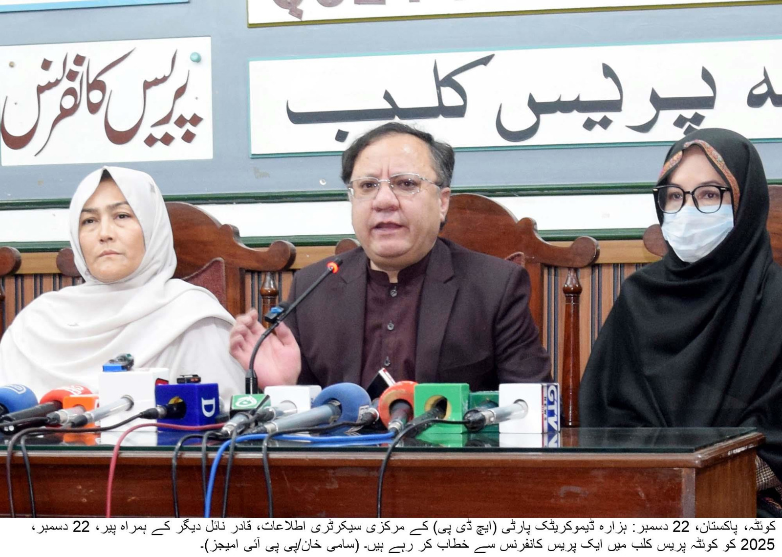 انتخابات کے التواء کے خلاف عدالت میں اپیل دائر کردی، عوامی حقوق پر سمجھوتہ نہیں کریں گے: ایچ ڈی پی کی پریس کانفرنس