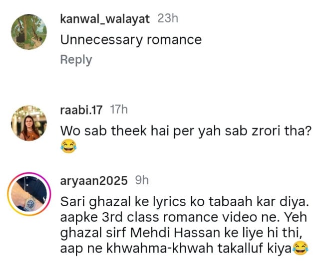 تاہم، گلوکار کو اس ویڈیو میں بطور ہیرو رومانوی کردار ادا کرنے پر شدید عوامی تنقید کا سامنا ہے۔
