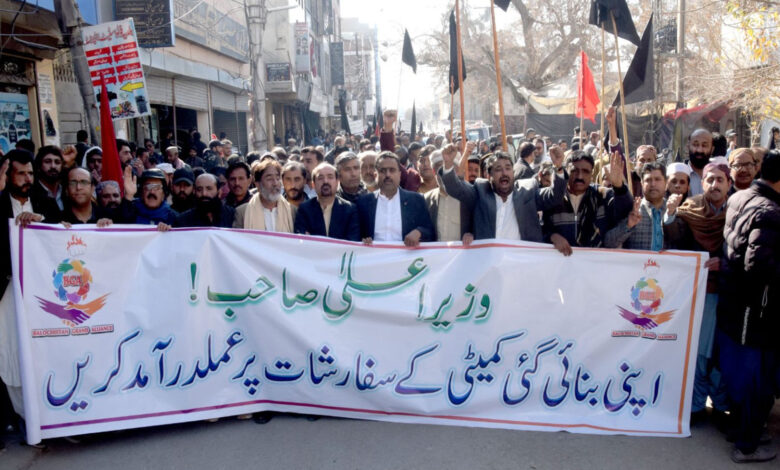 کوئٹہ(قدرت روزنامہ)گورنمنٹ ٹیچرز ایسوسی ایشن ضلع کوئٹہ کے جاری کردہ ایک بیان میں کہا گیا ہے کہ حکومت بلوچستان صوبے کے ڈھائی لاکھ سے زائد ملازمین کو دیوار سے لگانے پر تلی ہوئی ہے۔ کوئٹہ سمیت بلوچستان کے مختلف اضلاع سے اساتذہ کرام اور دیگر سرکاری ملازمین کو گرفتار کر کے جیلوں میں قید کیا گیا ہے، جو کہ ایک انتہائی افسوسناک اور قابلِ مذمت عمل ہے۔بیان میں مزید کہا گیا کہ گرینڈ الائنس کے مرکزی قائدین کے گھروں پر کوئٹہ میں روزانہ کی بنیاد پر چھاپے مارے جا رہے ہیں، جس سے چادر اور چار دیواری کے تقدس کو پامال کیا جا رہا ہے۔ اس کے علاوہ درجنوں پروفیسر صاحبان کو معطل کر دیا گیا ہے جبکہ دیگر ملازمین کو شوکاز نوٹسز جاری کیے گئے ہیں۔گورنمنٹ ٹیچرز ایسوسی ایشن ان تمام غیر انسانی، غیر قانونی اور ملازمین دشمن اقدامات کی سخت الفاظ میں مذمت کرتی ہے۔ بیان میں حکومت بلوچستان سے مطالبہ کیا گیا ہے کہ تمام گرفتار ملازمین کو فوری طور پر رہا کیا جائے اور گرینڈ الائنس کے قائدین کو مذاکرات کے لیے طلب کیا جائے۔ایسوسی ایشن نے مطالبہ کیا ہے کہ وزیر اعلیٰ بلوچستان کی جانب سے تشکیل دی گئی کمیٹی کی سفارشات کی روشنی میں 30 فیصد ڈسپیریٹی ریڈکشن الاو¿نس سمیت دیگر جائز مطالبات کے نوٹیفکیشن فوری طور پر جاری کیے جائیں۔ مطالبات کی تکمیل میں کسی بھی قسم کی تاخیر کی تمام تر ذمہ داری حکومت پر عائد ہو گی۔