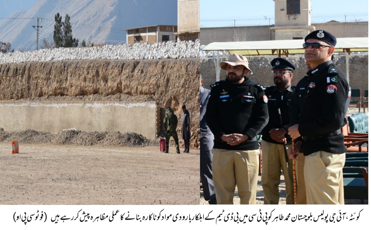 اس موقع پر آئی جی پولیس نے تربیتی سہولیات، بم ڈسپوزل اسکواڈ اور اہلکاروں کی پیشہ ورانہ تیاری اور تربیت کا جائزہ لیا اس موقع پر ڈی آئی جی اسپیشل برانچ طاہر علاؤالدین سمیت سینئر پولیس آفیسران نے آئی جی پولیس بلوچستان کو پولیس ٹریننگ کالج میں جاری تربیتی پروگراموں میں جدید سہولیات ، بم ڈسپوزل آلات کے حوالے سے بریفنگ دی اور بم ڈسپوزل اسکواڈ کے اہلکاروں نے آئی جی پولیس کو دھماکہ خیز مواد کو ناکارہ بنانے کی عملی مشق پیش کی۔ جس پر آئی جی پولیس نے اسے سراہتے ہوئے اہلکاروں کی مہارت اور پیشہ ورانہ صلاحیتوں پر اطمینان کا اظہار کرتے ہوئے کہا کہ بلوچستان ایک اہم اور حساس صوبہ ہے