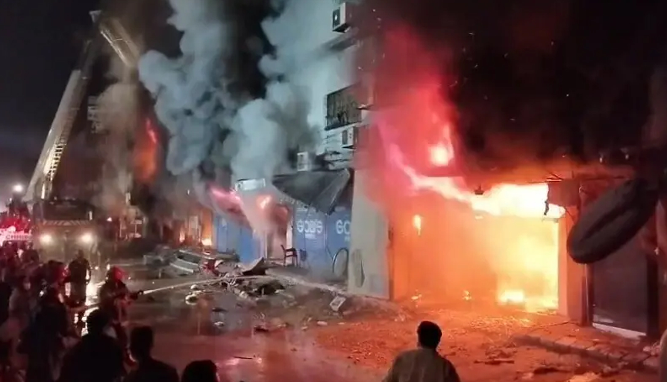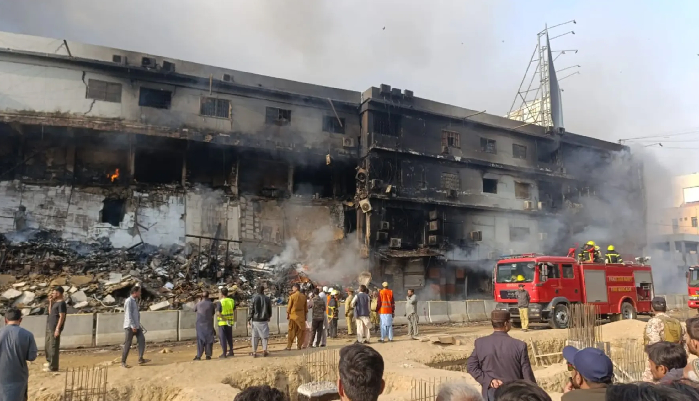 ریسکیو حکام کے مطابق آگ کی وجہ سے عمارت کے پلرز کم زور ہوگئے ہیں، متعدد دراڑیں پڑ گئی ہیں، عمارت انتہائی پرانی ہونے کے باعث گرنے کا خدشہ ہے۔