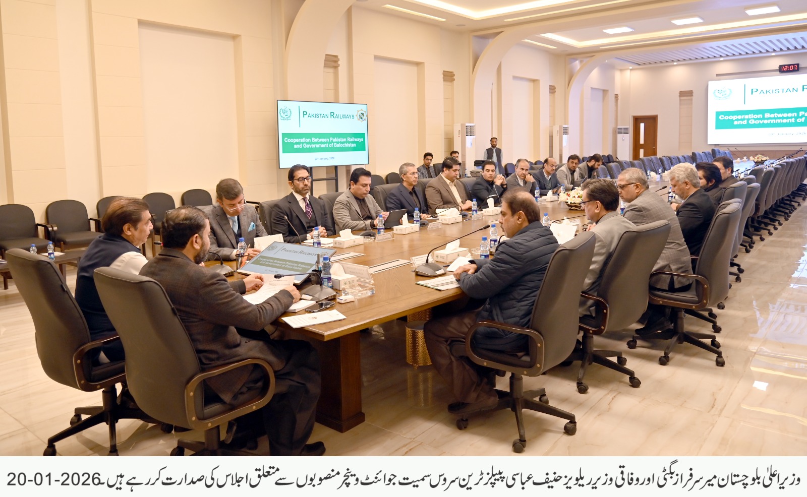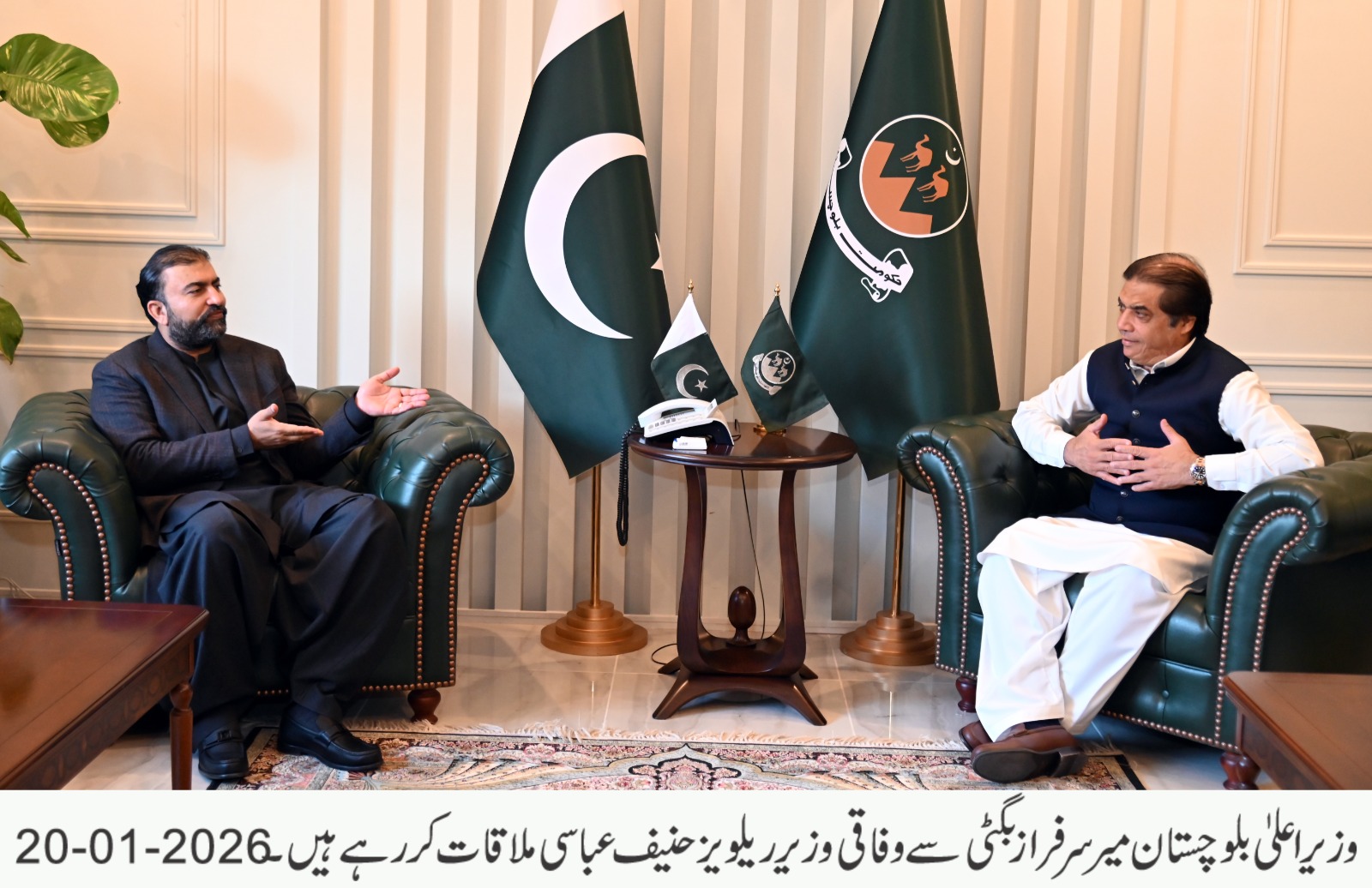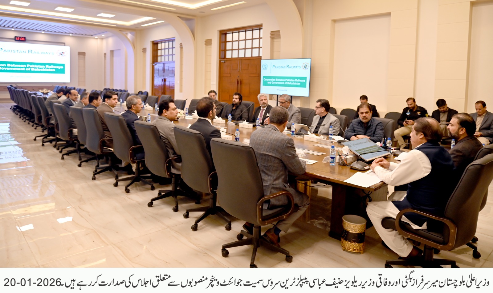 وزیر اعلیٰ بلوچستان میر سرفراز بگٹی اور وفاقی وزیر ریلویز حنیف عباسی کی زیر صدارت اجلاس، پیپلز ٹرین سروس سمیت مشترکہ ترقیاتی منصوبوں کے آغاز پر اصولی اتفاق