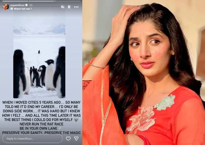 انسٹا اسٹوری میں ماورا جس ویڈیو کا حوالہ دے رہی تھیں، وہ اصل میں ایک اکیلے پینگوئن کی ہے جو اپنی کمیونٹی سے الگ ہو کر برفانی پہاڑوں کی سمت چل پڑتا ہے۔