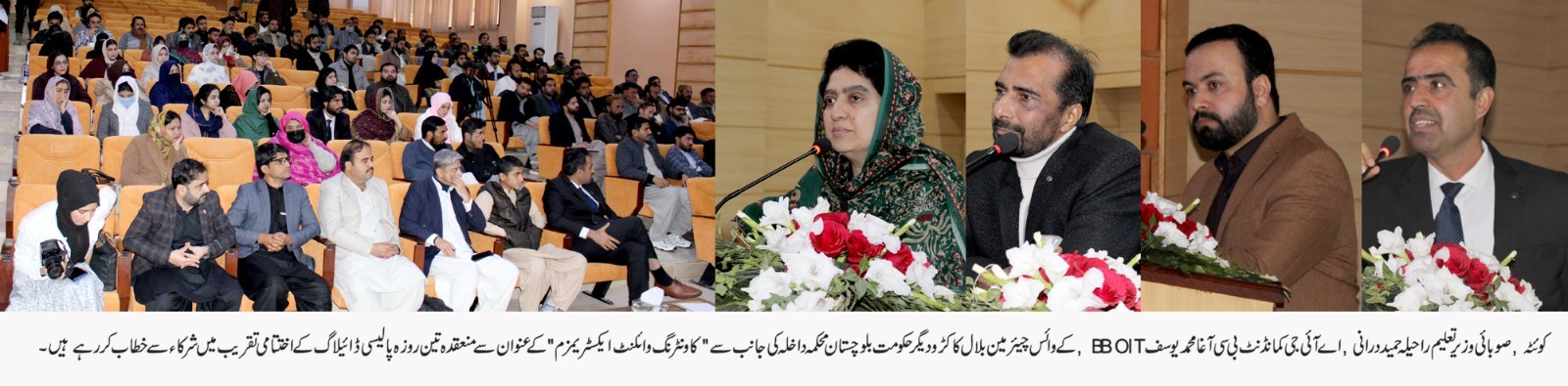 کوئٹہ(ڈیلی قدرت کوئٹہ)حکومت بلوچستان کے محکمہ داخلہ کی جانب سے کاونٹرنگ وائلنٹ ایکسٹریمزم کے موضوع پر تین روزہ پالیسی ڈائیلاگ کی اختتامی تقریب سے صوبائی وزیر تعلیم راحیلہ حمید خان درانی، بلوچستان بورڈ آف انویسٹمنٹ اینڈ ٹریڈ کے وائس چیئرمین بلال کاکڑ، ایڈیشنل سیکرٹری داخلہ مامون حمید،ایڈیشنل انسپکٹر جنرل پولیس کمانڈنٹ بلوچستان کانسٹیبلری اغا محمد یوسف، ڈاکٹر عبدالقادر، چیف کوآرڈینیشن آفیسر سی وی ای ڈاکٹر دوست محمد بڑیچ، ڈاکٹر عصمت اللہ و دیگر نے خطاب کیا۔ اس موقع پر وزیر تعلیم راحیلہ حمید خان درانی نے کہا کہ شدت پسندی کا خاتمہ ہمارے صوبے اور ملک کا سب سے بڑا چیلنج ہے جس پر قابو پانے کیلئے ہم سب نے ملکر کردار ادا کرنا ہوگا، اس حوالے سے تعلیمی نصاب میں تبدیلی کیلیے اقدامات اٹھائے جائینگے کیونکہ مثبت سوچ ہی نوجوانوں کو تابناک مستقبل کی طرف لے جا سکتی ہے۔ انہوں نے کہا کہ صوبائی حکومت وزیراعلی بلوچستان میر سرفراز بگٹی کی سربراہی میں بند اسکولوں کی بحالی، میرٹ پر اساتذہ کی بھرتی اور یونیورسٹیوں کو فنڈز کی فراہمی یقینی بنا رہی ہے۔ بلوچستان بورڈ آف انویسٹمنٹ اینڈ ٹریڈ کے وائس چیئرمین بلال کاکڑ نے کہا کہ صوبے میں انٹرپرینیورشپ اور انویسٹمنٹ کو فروغ دینے کے لیے بزنس فیسیلٹیشن سینٹر کا افتتاح بہت جلد کیا جائے گا تاکہ نوجوان سرکاری نوکریوں پر انحصار کرنے کے بجائے اپنا کاروبار شروع کریں، سینٹر میں فائل کی پروسیسنگ صرف 15 دنوں میں ہوگی اور تاخیر کی صورت میں آٹو جنریٹڈ ای میل سیکرٹری اور چیف سیکرٹری کو جائے گی۔ ایڈیشنل سیکرٹری داخلہ مامون حمید نے کہا کہ پالیسی ڈائیلاگ میں میڈیا، پروفیسرز، علماکرام اور قانون نافذ کرنے والے اداروں کی شرکت قابل ستائش ہے جس سے نوجوانوں کے بہتر مستقبل کے لیے لائح عمل پر غور کیا گیا۔ تقریب میں ڈاکٹر دوست محمد نے بلوچستان کے جیو اکنامک پوٹینشل پر پریزنٹیشن پیش کی۔